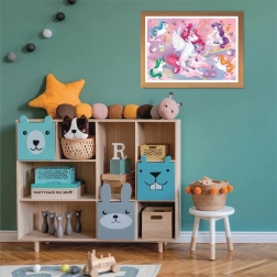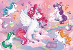 - Vidám egyszarvúk motívum a derűs kirakózáshoz