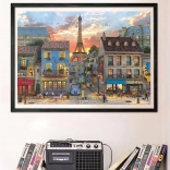 Romantikus utca Eiffel-toronnyal és esti hangulattal, amely kirakás után dekoratív képpé válik, keretezésre is alkalmas.