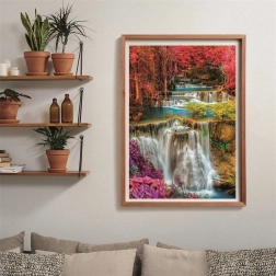 A többszintű zuhatagok az őszi természet közepén vizuálisan gazdag, részletdús jelenetet alkotnak, amelyet élvezet kirakni.
