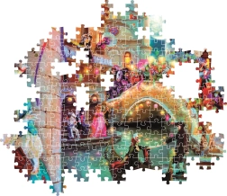 Holdfényes karneváli jelenet maszkokkal, híddal és gondolákkal, gazdag részletekkel, amelyeket öröm felfedezni a kirakás minden lépésénél.