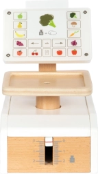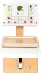 A small foot Fresh gyerek mérleg ideális kiegészítő minden játékkonyhába vagy boltocskába. A mutató és a tál terhelés alatti valós mozgása segíti a tömegmérés elvének megértését. A minőségi akrilból készült nagy „kijelzőt” vezérlőelemek és gyümölcs‑, illetve zöldségmotívumok díszítik, ami növeli az áttekinthetőséget és a játékélményt.