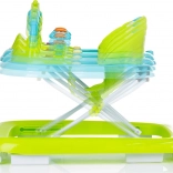 A járássegítő könnyen összecsukható és összeszerelhető, így kisebb helyen is gond nélkül tárolható. A 3 állítható ülésmagasság az aktuális testmagassághoz igazítható, míg a 360°-ban forgó első kerekek megkönnyítik a mozgást a szobában.