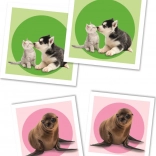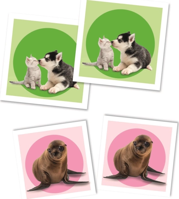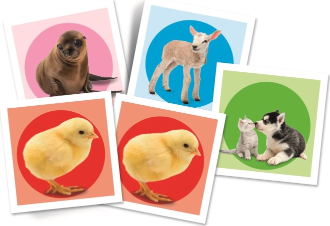 Az állatkölyköket ábrázoló színes illusztrációk felkeltik a figyelmet és motiválják a gyerekeket az ismételt játékra, így természetes módon edzik a memóriát és a koncentrációt.