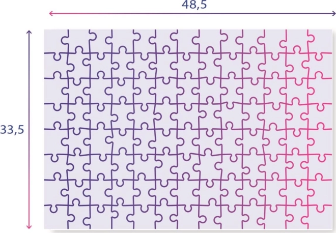 A 104 darabos formátum remekül illik kezdő és haladó kis kirakók számára is. A puzzle fejleszti a finommotorikát, a logikus gondolkodást és a türelmet. Összeállítva mérete körülbelül 48,5 × 33,5 cm – ideális méret az asztalon vagy alátéten való bemutatáshoz.