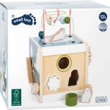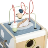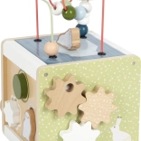 A gyöngy labirintusok, a forma bedobó, a csúszó labirintusok, a fogaskerekek és a forgó lapok változatos tevékenységet kínálnak az ügyesség és a logika fejlesztéséhez.