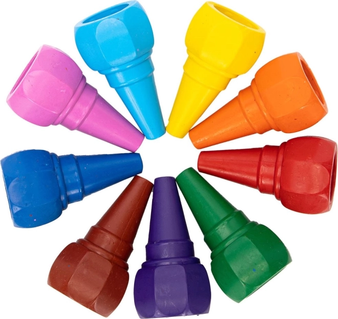 A kréták biztonságos, nem mérgező anyagokból készülnek, a színek pedig fürdés után egyszerűen letörölhetők a kezekről és a legtöbb felületről. A csomag 10 színt tartalmaz a változatos és vidám alkotáshoz.