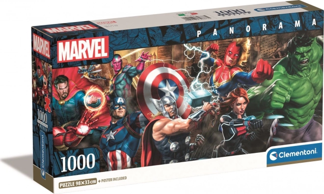 A Panoráma Puzzle Avengers 1000 darabbal egyedülálló szórakozást és kihívást kínál minden rajongó számára. Ez a puzzle garantálja a nagyszerű élményt a kiváló minőségű nyomtatásnak és vastag kartonpapírnak köszönhetően. Élvezze ikonikus karakterek, mint Amerika Kapitány, Thor és Vasember rendkívül részletes képét. Ideális nyugodt pillanatokhoz vagy gyűjtőknek, minden korosztály számára.