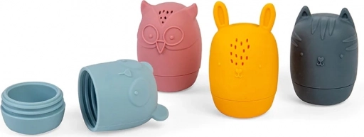 Négy aranyos állatka, köztük a panda, nyuszi, macska és bagoly, minden fürdést élménnyé varázsolnak.