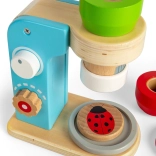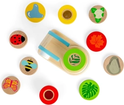 A fából készült mikroszkóp lencsékkel és korongokkal ösztönzi a gyermekeket a felfedezésre és a kreativitásra.