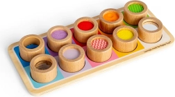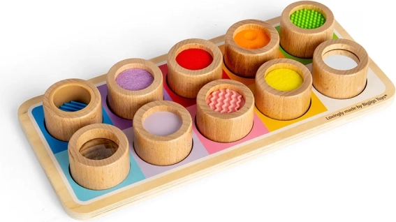 Ez a csodálatos érzékelő tábla tökéletes módja annak, hogy a gyerekeket megismertesse a különböző textúrákkal és színekkel. Tartalmaz egy fa táblát színes lyukakkal és tizenegy behelyezhető elemet, amelyek mindegyike egyedi felületkezeléssel rendelkezik, a bordázott szilikontól a puha nemezig. Ez a játék nemcsak a különböző textúrák megkülönböztetésében segít, hanem a kéz és szem koordinációt is fejleszti.