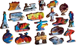 61 különleges elem állat-, épület- és tárgyformákkal. A precíz lézervágás sima éleket és szépen kiemelt részleteket ad.