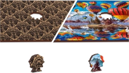 Fedezze fel a kirakózás varázsát ezzel a kétoldalas fa puzzléval, amely magasabb nehézségi szintet, egyedien formázott darabokat és műanyagmentes, környezetbarát csomagolást kínál. A lézerrel precízen kivágott, vastag HDF lapból készült elemek simára munkált éleket, tökéletes illeszkedést és hosszú élettartamot biztosítanak. Élvezze a 2 az 1-ben szórakozást – az előlapon gyönyörű minta hőlégballonokkal a táj felett, a hátoldalon pedig forma szerinti rakosgatást segítő minta várja.