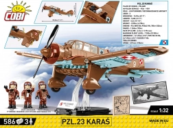 PZL.23 Karaś az egyik fő bombázó repülőgép volt a lengyel légierő számára a szeptemberi hadjárat során 1939-ben. A Polskych Zakładach Lotniczych (PZL) tervezésében 1936-ban állt szolgálatba, hogy a kor előrehaladott technológiáját biztosítsa. Ennek a történelmi legendának a modellje részletesen kidolgozott COBI kockákból hű tervezéssel kínál kapacitást három pilóta figurájának, ahogy a valódi gépen is.