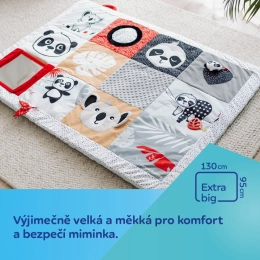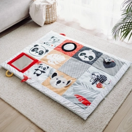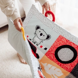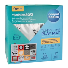 A Canpol babies BabiesBoo kollekció érzékszervi, hason fekvéshez ajánlott edukációs játszószőnyege biztonságos és kellemes módja annak, hogy mozgásban tartsa a babát, miközben a szülőnek is jut egy kis idő magára vagy a házimunkára. A szőnyeg kivételesen nagy és puha – 130 x 95 cm, így kényelmet és biztonságot nyújt a legkisebbeknek. A Canpol babies edukációs szőnyeg könnyen összehajtható, kényelmes fogantyúval rendelkezik az egyszerű hordozáshoz, így bárhol kialakítható a baba saját kis tere. A nagy tükör ösztönzi és meghosszabbítja a hason töltött időt, miközben a baba a szőnyeg különböző részeit fedezheti fel. A sok érzékszervi elem bevonja a gyermek érzékszerveit: látás, hallás és tapintás. A különféle anyagtextúrák, kontrasztos színek és minták, valamint a finom hangok nagyszerű szórakozást nyújtanak a baba fejlődő érzékeinek már az élet első pillanataitól. A Canpol babies érzékszervi fejlesztő szőnyeg segít a gyermek helyes mozgásfejlődésének támogatásában. A szőnyeg gépben mosható.Gyermekterület bárhol, ahol szükségünk van rá.Ajánlja: Magdalena Zujewicz – gyermekgyógytorna-szakember, pedagógus és szenzoros integrációs terapeuta.Kivételesen nagy és puha szőnyeg, amely kényelmet és biztonságot nyújt babájának.A nagy tükör felkelti a baba érdeklődését és meghosszabbítja a hason fekve töltött időt.Számos elem vonja be a gyermek érzékszerveit: látás, hallás és tapintás.Könnyen összehajtható a kényelmes fogantyúnak köszönhetően, amely megkönnyíti a hordozást.A kontrasztos színek és minták támogatják a gyermek látásának fejlődését.Támogatja a tapintás fejlődését és gyakoroltatja a kézügyességet.Fejleszti a kéz-szem és a hallás-mozgás koordinációt.Könnyen tisztán tartható – gépben mosható.Ideális a baba életének első pillanataitól kezdve.A játék biztonságos, BPA-mentes anyagból készült.A szőnyeg méretei: 130 x 95 cmHasználati útmutató:A tisztítás módját a címke tartalmazza. A szőnyeget a tükör kivételével gépben mossa maximum 30°C-on, kímélő programon. Tartsa a játszószőnyeget tisztán. A szőnyeget a tükör kivételével gépben mossa max. 30°C-on, kímélő programmal. Használjon kímélő, babáknak való mosószert. Külön mossa. A tükröt nedves ruhával törölje le. Távolítsa el a tükörről a védőfóliát.Figyelem! Fontos gyermeke egészsége és biztonsága szempontjából! Minden használat előtt gondosan ellenőrizze. A kopott/sérült játékot cserélje újra.Figyelmeztetés! Tartsa távol a nyílt lángtól. Őrizze meg a használati útmutatót a későbbi felhasználás céljából.A szőnyeg megfelel az alábbi követelményeknek:Az Európai Parlament és a Tanács 2009/48/EK irányelve a játékok biztonságárólEN 71 - 1 Játékok biztonsága – 1. rész: Mechanikai és fizikai tulajdonságokEN 71 - 2 Játékok biztonsága – 2. rész: ÉghetőségEN 71 - 3 Játékok biztonsága – 3. rész: Egyes elemek migrációja
