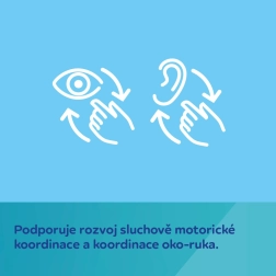 A biztonságos, stabil kiságyrögzítés kényelmes telepítést biztosít. A fellógatott játékok különféle ingereket kínálnak (susogás, sípolás, csörgés), amelyek fejlesztik a vizuális és auditív stimulációt, valamint a mozgáskoordinációt már 0m+ kortól.