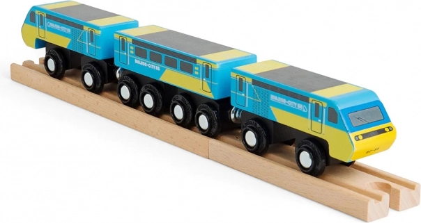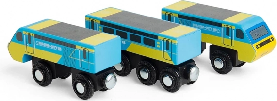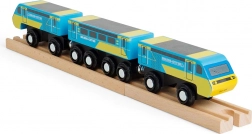 Fedezze fel a ikonikus fa Intercity 125 vonatot a Bigjigs Railtől a híres kék–sárga dizájnban. Háromkocsis szerelvény mágneses kapcsolókkal és 2 darab sínnel, ideális a kreatív játékhoz, a finommotorika, a koordináció és a kommunikációs készségek fejlesztéséhez. Minőségi, felelősen beszerzett fából készült, kompatibilis a legtöbb fa vasútpályával.