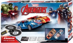 A Carrera GO versenyszett az Avengers hőseivel dinamikus szórakozást kínál az egész családnak. A 2,4 m hosszú pálya Captain America és Vasember autóival egyenes szakaszokat, kanyarokat és felüljárót tartalmaz. A tápellátás elemmel vagy tápegységgel (nem tartozék) megoldható, a rendszer kompatibilis a GO!!! sorozattal, és a kapcsoknak köszönhetően könnyen összeszerelhető.