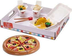 A gyerekek futárt és vásárlót is alakíthatnak, az elviteles dobozokba csomagolják a menüt, majd a csomagolásból kialakítható tálcán tálalnak. A valósághű ételek és a műanyag valamint filc elemek kombinációja tökéletes alapot ad a főzős szerepjátékhoz és a közös lakomákhoz a barátokkal.