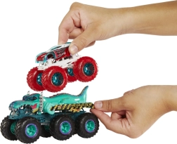 A HOT WHEELS MONSTER TRUCKS Big Rigs hatkerekű vontatói 1:64 méretarányban igazi akciót hoznak. A 6 óriási keréknek köszönhetően bármilyen tereppel megbirkóznak, és a vontatóhoroggal vagy platóval egy másik 1:64-es járművet is elszállítanak. A fém kivitel, a markáns részletek és a kiváló kompatibilitás más modellekkel hosszú órákon át tartó szórakozást garantálnak. A termék a választék része, véletlenszerű modellválasztással, az ár 1 db-ra vonatkozik.