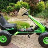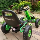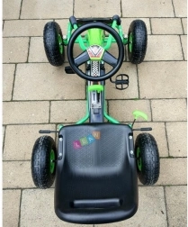 Ajándékozzon a gyerekeknek akciódús élményt a szabad ég alatt az A-15 pedálos gokarttal. A felfújható kerekeknek, a kéziféknek mindkét hátsó keréken és a masszív fémszerkezetnek köszönhetően a vezetés stabil, biztonságos és szórakoztató. Az automatikus előre/hátra üresjárat, a kerékcsapágyak és az állítható ülés követi a gyermek növekedését, és kényelmet valamint hosszú élettartamot biztosít.
