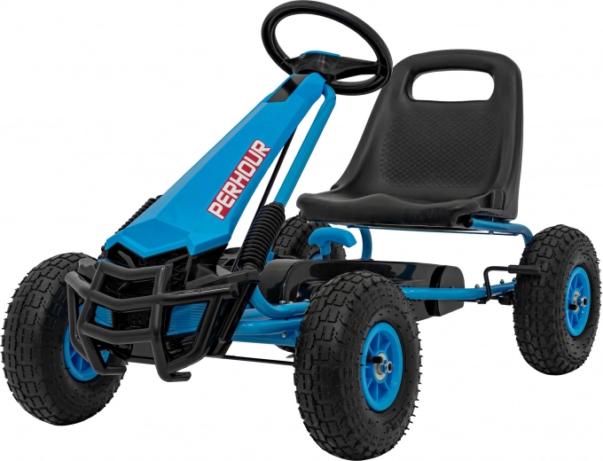 A piros gyerek lábbal hajtós gokart, amely kézi fékkel és felfújható kerekekkel van felszerelve, kiváló választás szórakoztató és aktív gyermekjátékhoz. Ideális bel- és kültéri használatra, masszív szerkezetének köszönhetően biztonságot és verhetetlen élményt biztosít.