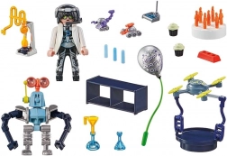 Ez a PLAYMOBIL ajándékszett a gyerekeket a találmányok lenyűgöző világába hívja. A laborban születésnapot ünnepelnek – a drón tortát hoz, a mini robotok muffint visznek, a nagy robot pedig büszkén tart egy partilufit. A gazdag tartozékoknak és a valósághű funkcióknak köszönhetően a gyerekek könnyedén megalkothatják saját történeteiket.