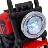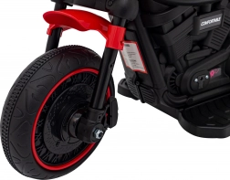 A stílusos FASTER gyermek chopper motor rengeteg szórakozást és biztonságot kínál a kis motorosoknak. 20 W teljesítményű elektromos hajtással, 6V/4,5Ah akkumulátorral, LED fényszórókkal és gazdag audiopanellel (FM rádió, MP3, SD, Bluetooth, USB, AUX) rendelkezik. A stabil műanyag kerekek és a segédkerekek megkönnyítik az előre és hátra haladást, a puha ülés és a valósághű motorindítási hangok pedig autentikus élményt nyújtanak.