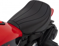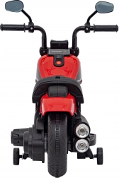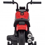 Az ergonomikusan formázott ülés és a stabilizátorokkal ellátott műanyag kerekek kényelmes és biztonságos utazást biztosítanak a kis motorosoknak.