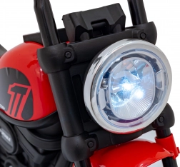 A fényes első LED fényszóró növeli a láthatóságot és valósághű chopper megjelenést kölcsönöz a motornak.