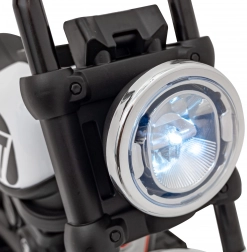 A fényes első LED lámpa növeli a láthatóságot és fokozza a vezetési élményt, akárcsak egy igazi motoron.