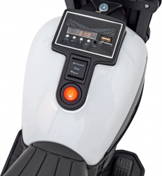 A zene és a kedvenc mesék mindig kéznél vannak a audiopanelnek köszönhetően, FM rádióval és lejátszási lehetőséggel MP3, Bluetooth, USB, SD vagy AUX csatlakozással. A kényelmes ülés és a könnyű konstrukció garantálja a komfortos kezelhetőséget és az egyszerű hordozhatóságot.