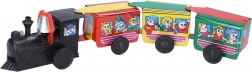 A fém, kulccsal felhúzható vonat minden kis vasútrajongónak örömet szerez. Elég elfordítani a kulcsot, és a vonat úgy indul, mintha versenyezne. A készlet egy mozdonyból és két vagonból áll, hossza 28 cm, és kompakt dobozban kerül forgalomba. Ideális játék a 3 éves kortól a fantázia és a finommotorika fejlesztéséhez. Fém kivitel, egyszerű kulcsos felhúzás és szórakoztató, elemek nélküli működés.