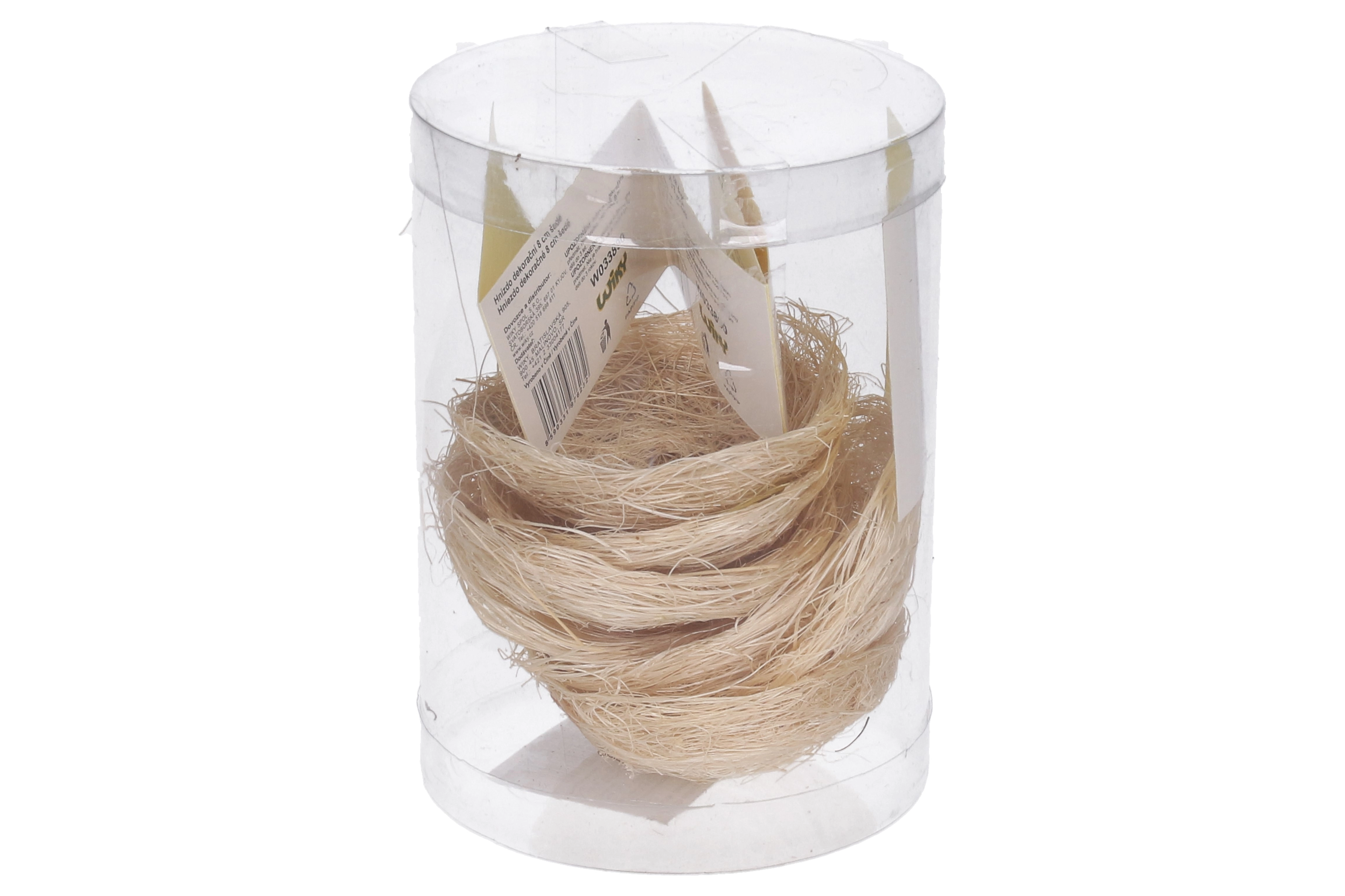 Alakítson ki otthon vagy rendezvényeken látványos dekorációt a kb. 8 cm átmérőjű dekorfészekkel. A természetes/szürkés árnyalatnak köszönhetően könnyen kombinálható más elemekkel, és jól mutat rusztikus és modern kompozíciókban is. Könnyű, jól rögzíthető, beltérben és fedett kültéri helyeken egyaránt használható.