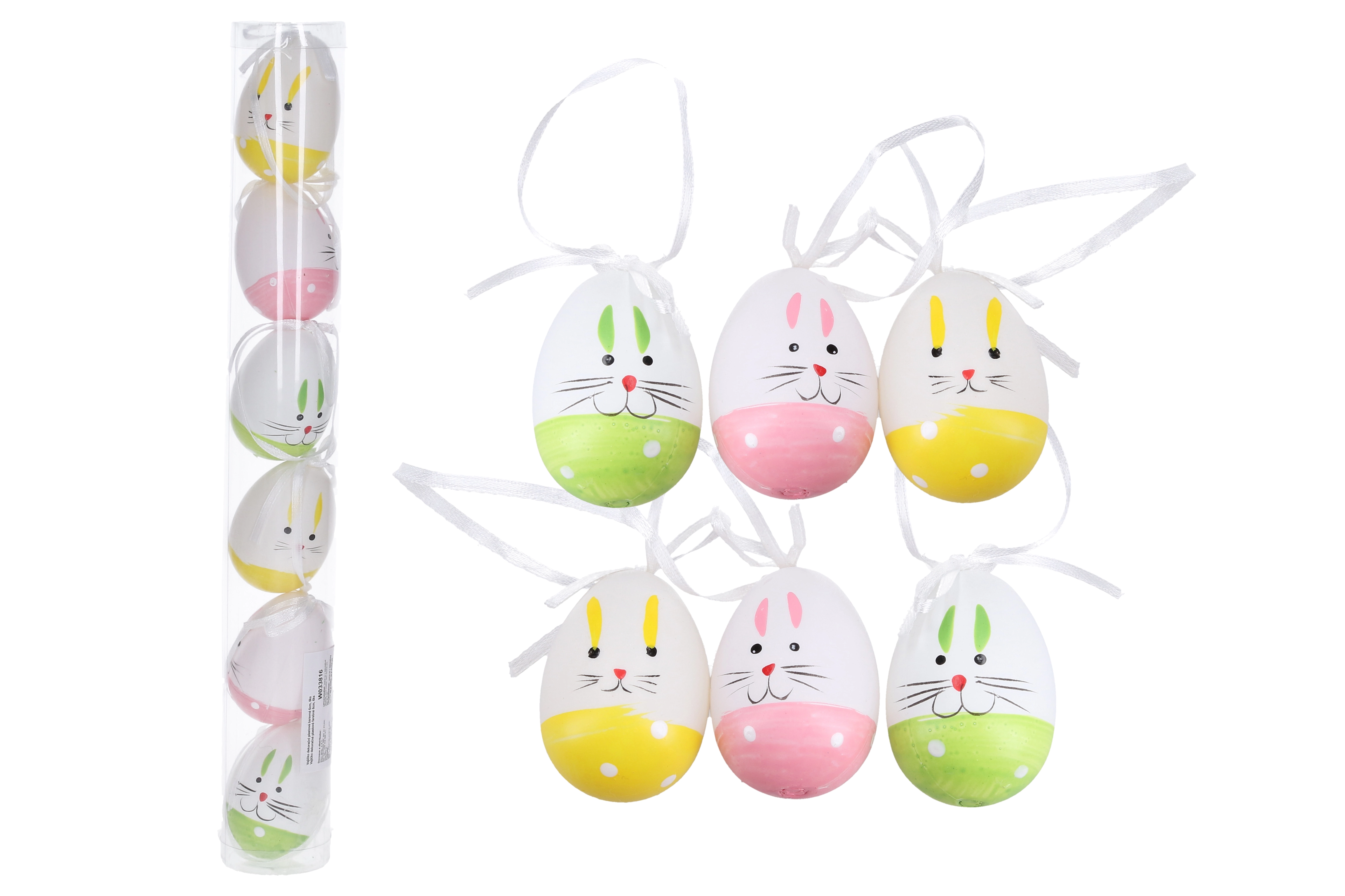A dekoratív műanyag színes tojások tökéletes kiegészítők minden ünnepi dekorációhoz. Minden tubus tartalmaz 6 darab tojást 6 cm-es méretben, ideális a gyors és hatékony díszítéshez.