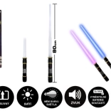 A kard hossza 80 cm, és könnyen összecsukható a szállításhoz vagy tároláshoz. A beépített szenzorok mozgás közbeni hangokat, valamint találatkor megszólaló hangot biztosítanak. A tápellátást 3× AAA elem adja, amelyek a csomagban megtalálhatók – kibontás után azonnal kezdődhet a játék.