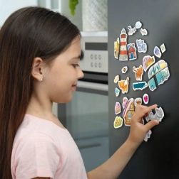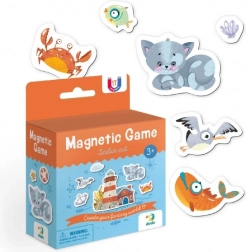 A **Mágneses macska és világítótorony játék** egy szórakoztató és kreatív játékkészlet, amely 20 mágneses darabot tartalmaz, lehetővé téve a gyerekek számára, hogy különböző jeleneteket alkossanak.