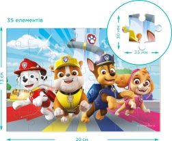 A Mancs őrjárat hőseinek motívumával ellátott minipuzzle örömet okoz az összeállítás során, és sikerélményt nyújt a kép befejezésekor. A 35 erős darabnak köszönhetően ideális első nagyobb kirakónak, támogatja a türelmet, a koncentrációt és a vizuális érzékelést.
