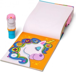 A képen egy gyermekeknek szánt kifestő és bélyegző látható, amely támogatja a kreatív alkotást.