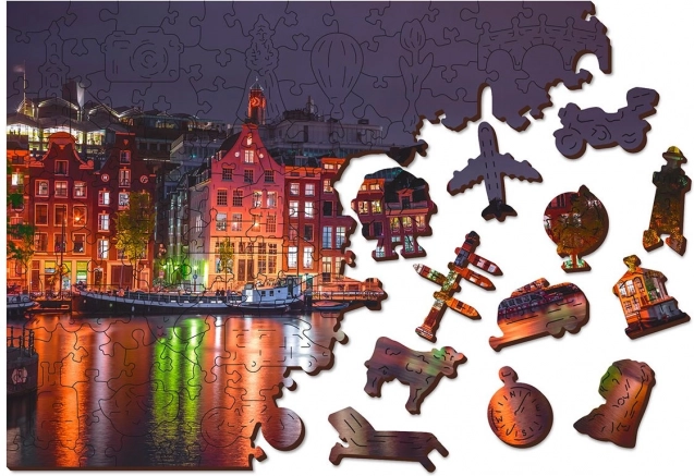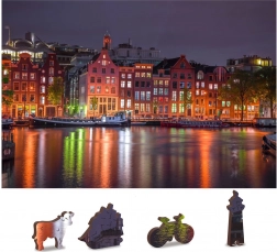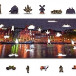 Minden darab nemcsak a teljes rész része, hanem egyedi formájában városi építményeket, állatokat vagy tárgyakat ábrázol. Az összerakás így nagyobb kihívást jelent, ami hozzájárul a szórakozáshoz és kihíváshoz. A puzzle-t továbbá Amszterdam éjszakai jelenete díszíti, amely tökéletesen bele van vésve minden darabba.