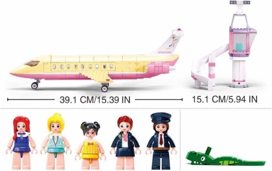 A készlet teljes mértékben kompatibilis a népszerű márkákkal, és a minőségi ABS műanyagnak köszönhetően remekül illeszkedik és hosszú élettartamú. A csomagban a női pilóta, a légiutas‑kísérő és három utas figurája, valamint tematikus kiegészítők is megtalálhatók a valósághű repülőtéri játékhoz. Tökéletes ajándék kis utazóknak és leendő pilótáknak.