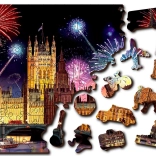 Fából készült puzzle-ünk, 'London éjjel tűzijátékkal' nemcsak szórakoztató, hanem oktató jellegű és dekoratív is. A precíz kidolgozás hosszú élettartamot garantál és lehetőséget ad az ismételt kirakásra.