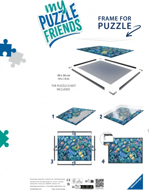 Ez a műanyag keret úgy lett tervezve, hogy tökéletesen keretezze a legfeljebb 70,3 x 50,5 cm méretű kirakókat, így alkalmas 1000 darabos puzzle-ökhöz, valamint a Krypt és Exit Puzzle sorozatokhoz is.