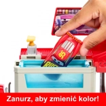 A Figurina – Mobil festő, színváltós készlettel megváltoztathatod kedvenc versenyzőid kinézetét a Disney Pixar Verdák világából. Ez a szállító lehetővé teszi, hogy nagy stílusban te legyél az utak királya. A csomag tartalmazza Villám McQueent és a levehető, színváltós Mannyt, így a színes átalakulás már a kicsomagolás után azonnal kezdődhet. Ragadd meg a „festék” spray-t, és fújj Mannyre vízvillámot, hogy lásd, hogyan változtatja a színét. Merítsd Villám McQueent a két tartály egyikébe, vagy fújd le „festékkel”, majd lifttel hajts fel a második szintre, hogy az új „festék” megszáradjon. Az autentikus filmes részleteknek és a kerekeken gördülő, ötletes fényezőműhely témának köszönhetően a móka ezzel a készlettel végtelen lehet. Az alsó részben található túlfolyó tartálynak hála a takarítás még sosem volt ilyen egyszerű. A 4 éves kortól ajánlott gyerekek és a Verdák rajongói egész nap játszhatnak, és további színváltós járműveket és készleteket gyűjthetnek, hogy bővítsék játékvilágukat. Külön megvásárolható, a készlet erejéig. A színek és díszítőelemek eltérhetnek.