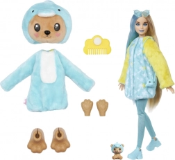 Ez a játékos szett a BARBIE Cutie Reveal sorozatból a kicsomagolás örömét és a fantáziadús játékot hozza el. Belül egy hosszú, színes hajjal és mozgatható testtel rendelkező BARBIE babát találsz, aki egy puha mackójelmezben rejtőzik, delfinnek beöltözve. A jelmez levétele után egy stílusos baba és kiegészítők várnak a végtelen öltözék-mixeléshez.