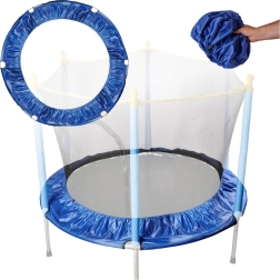 A burkolat ellenálló PVC anyagból készült kék színben, és rendelkezik egy húzózsinórral, amely könnyíti a trambulinra való szerelését. 140 cm átmérőjű trambulinokhoz készült.