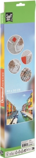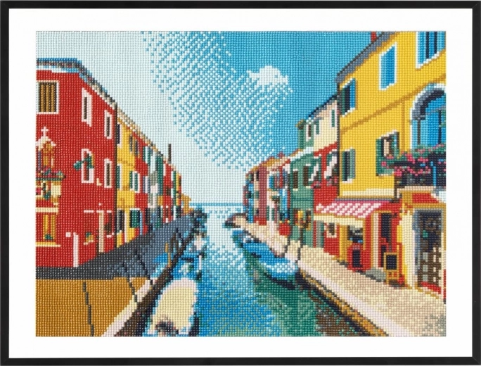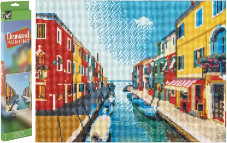 A gyémántfestés kreatív szórakozás mindenkinek – apró, színes kövecskéket helyez fokozatosan az előre nyomtatott vászonra egy applikáló toll segítségével. A romantikus vízi csatorna motívum a kövecskék csillogásával érvényesül, és otthona egyedi dekorációjává válik.