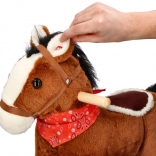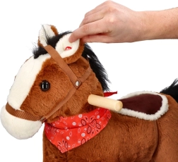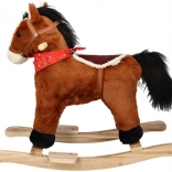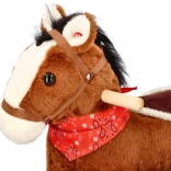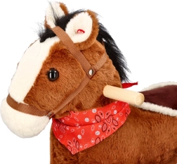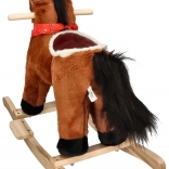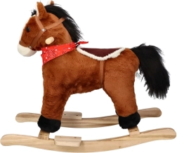 A barna színű, puha plüss felületű hintaló nyereggel és díszes kendővel ideális társ a mindennapi játékhoz. A masszív fa bölcsőtalpnak köszönhetően a gyermek biztonságosan hintázhat, fejlesztheti motorikáját és gyakorolhatja a koordinációt.