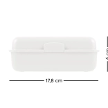 A belső elválasztónak köszönhetően könnyen szétválasztható a pékáru, a gyümölcs vagy a zöldség, így az uzsonna rendezett és friss marad. Az egyszerű zár gondoskodik arról, hogy a doboz ne nyíljon ki magától a hátizsákban. A tisztítás kényelmes – a megjelenés és a zárhatóság megőrzése érdekében kézi mosást ajánlunk.