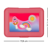 Kompakt méreteinek köszönhetően könnyen elfér az iskolatáskában vagy hátizsákban. A sima műanyag felület kézzel egyszerűen tisztítható, és ideális a mindennapi használatra. Az uzsonnás doboz remek választás iskolásoknak és ovisoknak, akik színes mintáját kedvelik, a szülők pedig a praktikus kialakítást értékelik.