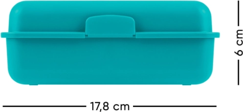 Tegye szünetét stílusossá a Színes Türkiz Uzsonnás Dobozunkkal. Ez az funkcionális műanyag doboz ideális napi használatra, hála az egyzáras záródásnak és a praktikus belső elválasztó falnak. A doboz tartósnak és könnyen szállíthatónak lett tervezve, ami miatt kiváló segítőtárs iskolába és munkába.